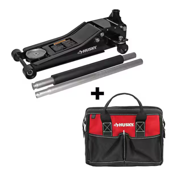 3-Ton Low Profile Floor Jack with Quick Lift with 12 in. 4 Pocket Zippered Tool Bag